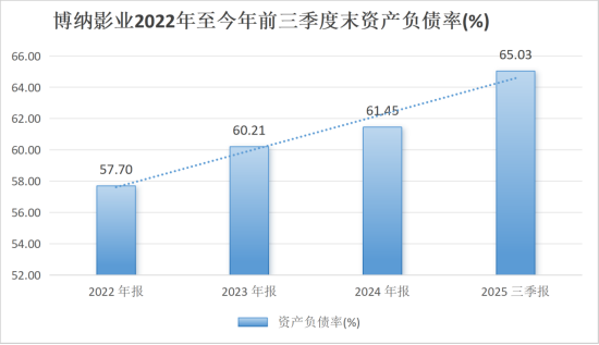 據(jù)此計(jì)算,博納影業(yè)資產(chǎn)負(fù)債率高達(dá)65.03%。而自2002年以來,公司資產(chǎn)負(fù)債率一直處于逐年攀升的趨勢。