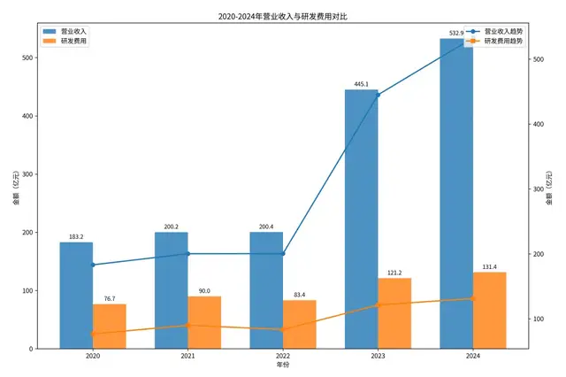 而這么多年來,攜程不光在客戶服務(wù)上投入,還長期維持著高研發(fā)費用。從2020年至2024年間,累計研發(fā)投入高達500億元。僅2024年一年,研發(fā)費用就達131億元,占營收的25%,這一比例遠高于很多互聯(lián)網(wǎng)科技公司。