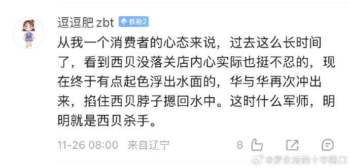 事件緣起華杉昨天在微博再次點評西貝事件,引發(fā)羅永浩回懟。華杉稱西貝被人算計,暗示羅永浩是網(wǎng)絡(luò)羅剎國。在羅永浩回懟后,華杉微博開啟一鍵防護(hù),被網(wǎng)友評論為想打又打不過。
